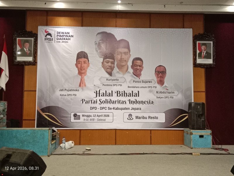 JEPARA | JEPARANEWS - Dewan Pimpinan Daerah (DPD) Partai Solidaritas Indonesia (PSI) Kabupaten Jepara di Hall Resto Maribu, Minggu (12/04/2026) Pukul 09:00 WIB - selesai mengadakan kegiatan halalbihalal Idul Fitri 1447 H / 2026 M.