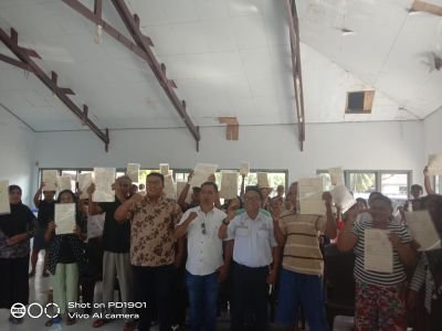 Sebanyak 120 sertifikat dibagikan dan diserahkan langsung kepada yang berhak. Dan sertifikat terbagi menjadi tanah kas desa dan tanah warga desa.