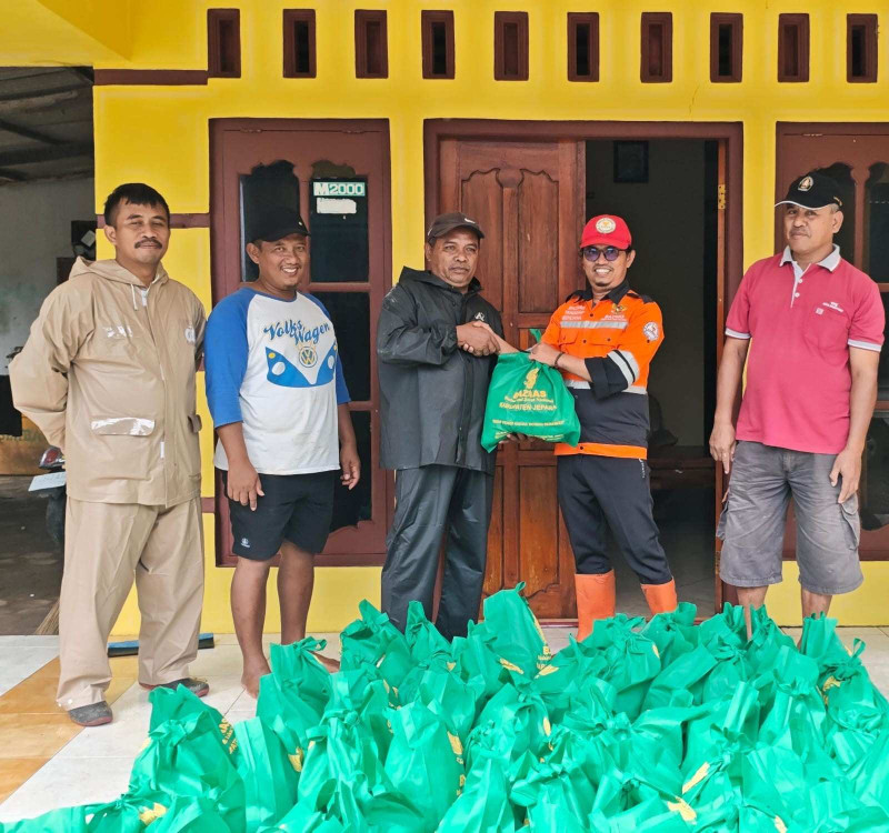 4. Bantuan 70 paket sembako bagi korban banjir di Desa Bondo, Kecamatan Bangsri.