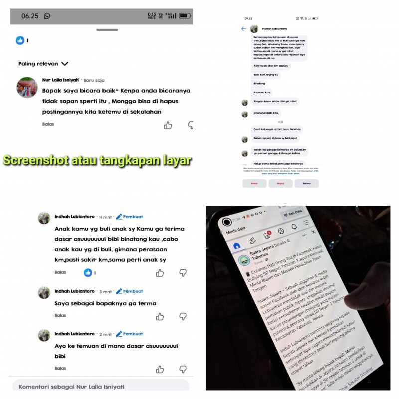 Berdasarkan beberapa dokumen screenshot atau cuplikan layar postingan di halaman grup Facebook Suara Jepara dan Info Seputar Jepara dengan akun Indhah Lubiantoro. Akun tersebut menulis dan memposting adanya dugaan bullying atau perundungan di SDN Negeri 3 Tahunan Jepara. Bahkan komentar akun Nur Laila Isniyati dengan tulisan "Bapak saya bicara baik-baik kenapa anda bicaranya tidak sopan seperti itu. Monggo bisa dihapus postingannya kita ketemu di sekolahan". Namun jawabannya oleh pemilik akun Indhah Lubiantoro tertulis kata-kata dan kalimat kotor atau makian.