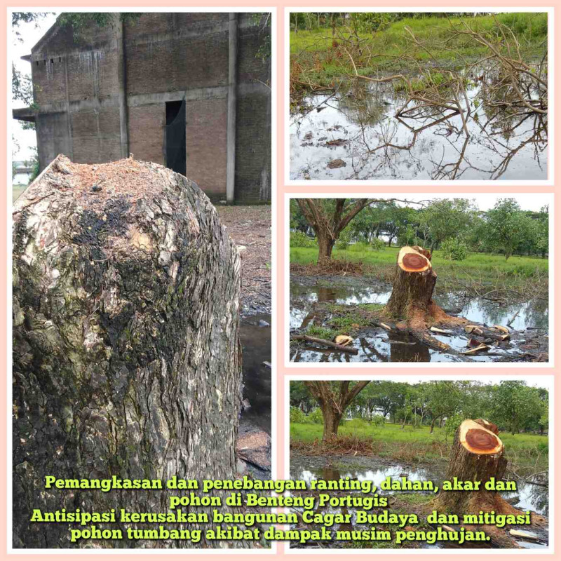 Kegiatan berupa pemangkasan ranting dan dahan serta dibarengi dengan penebangan dan pemotongan pohon agar akarnya tidak agresif menjalar menembus pondasi, memicu retakan, merusak saluran air, serta mengganggu kestabilan struktur bangunan Cagar Budaya Benteng Portugis yang merupakan salahsatu ikon bangunan wisata alam dan budaya Jepara.